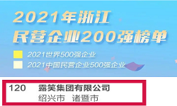 露笑集團入選“2021浙江民營(yíng)企業(yè)200強、研發(fā)投入100強”
