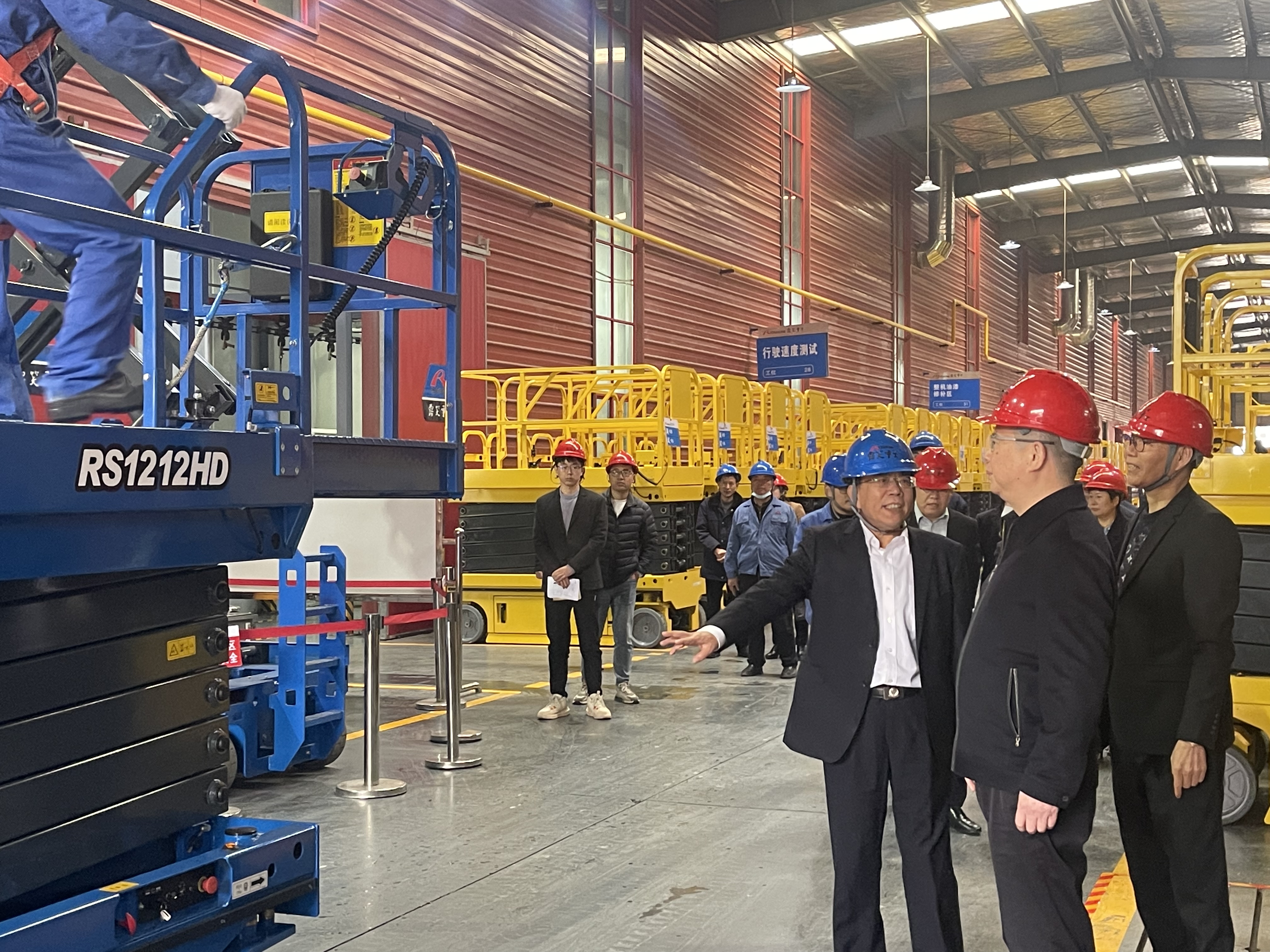 走訪(fǎng)中魯主席和王總詳細介紹了登高車(chē)生產(chǎn)線(xiàn)的工藝水平、自動(dòng)化程度、產(chǎn)能效率,以及產(chǎn)品質(zhì)量的穩定性等,并一同觀(guān)看登高車(chē)演繹。